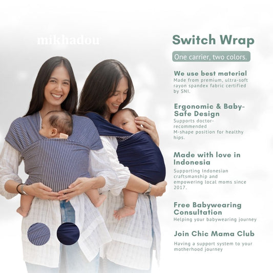 Stretchy Wrap - Reversible Breton Stripe Navy | Gendongan Bayi