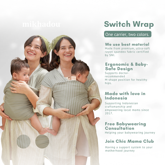 Stretchy Wrap - Reversible Breton Stripe Olive | Gendongan Bayi