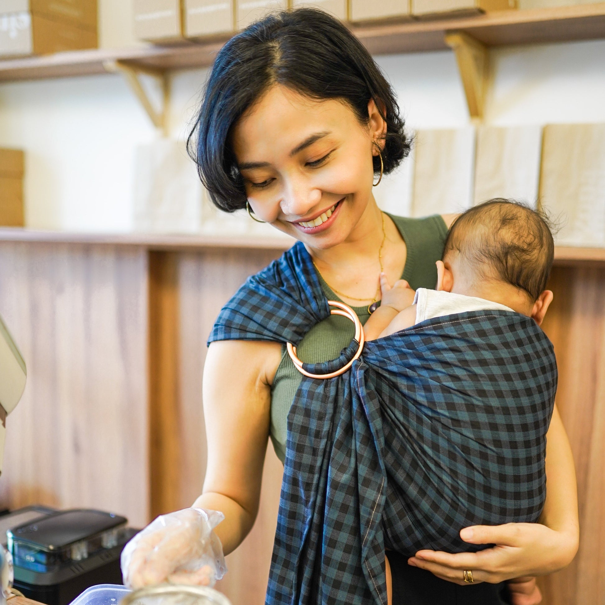 Ring Sling Cotton - Navy Gingham - Gendongan Bayi