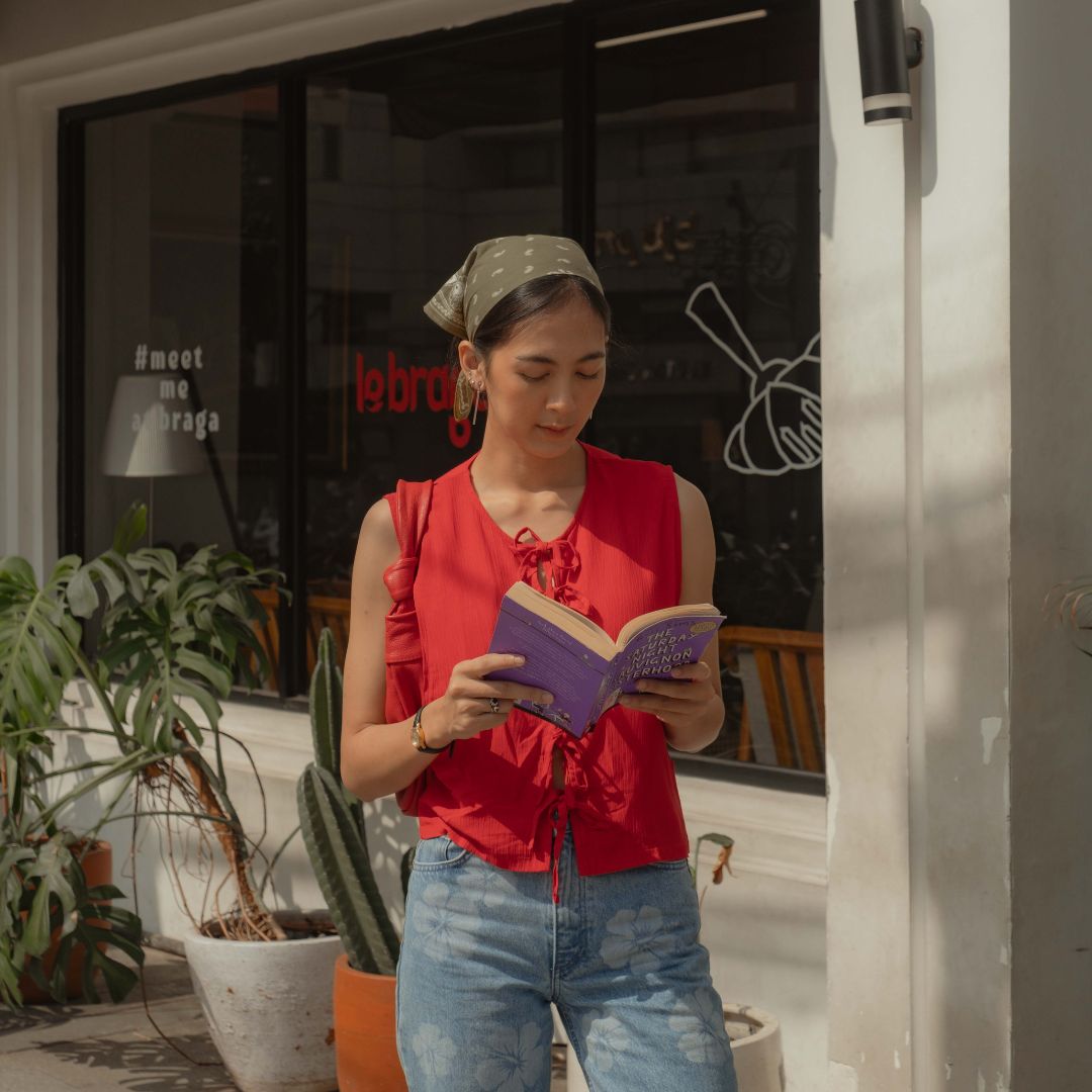 - Detail ada 5 tali yang dipakai sebagai kancing dijadikan seperti pita