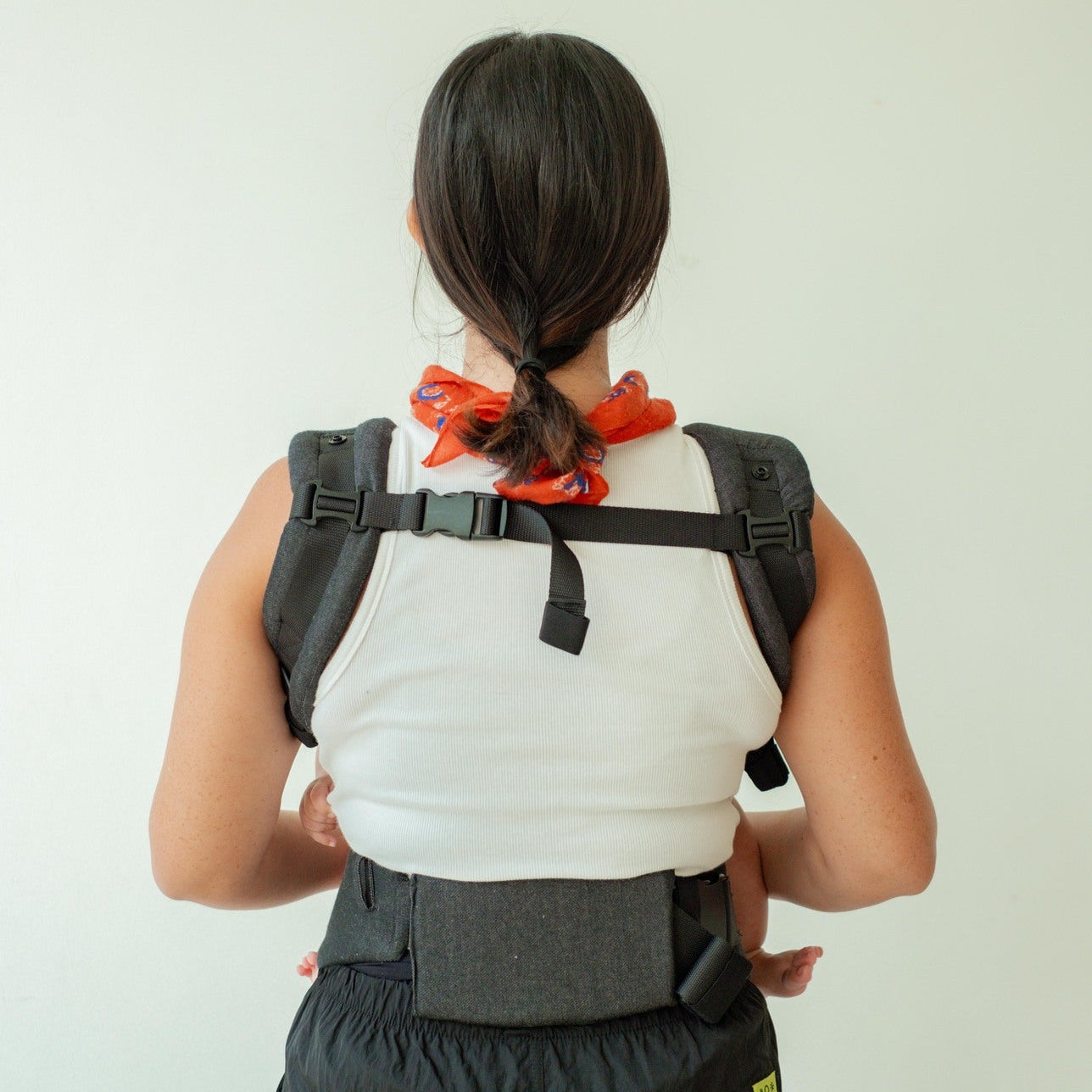 - The baby's weight is distributed evenly to the shoulders, back, chest, and hips of the carrier