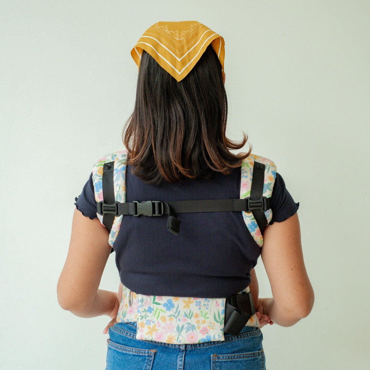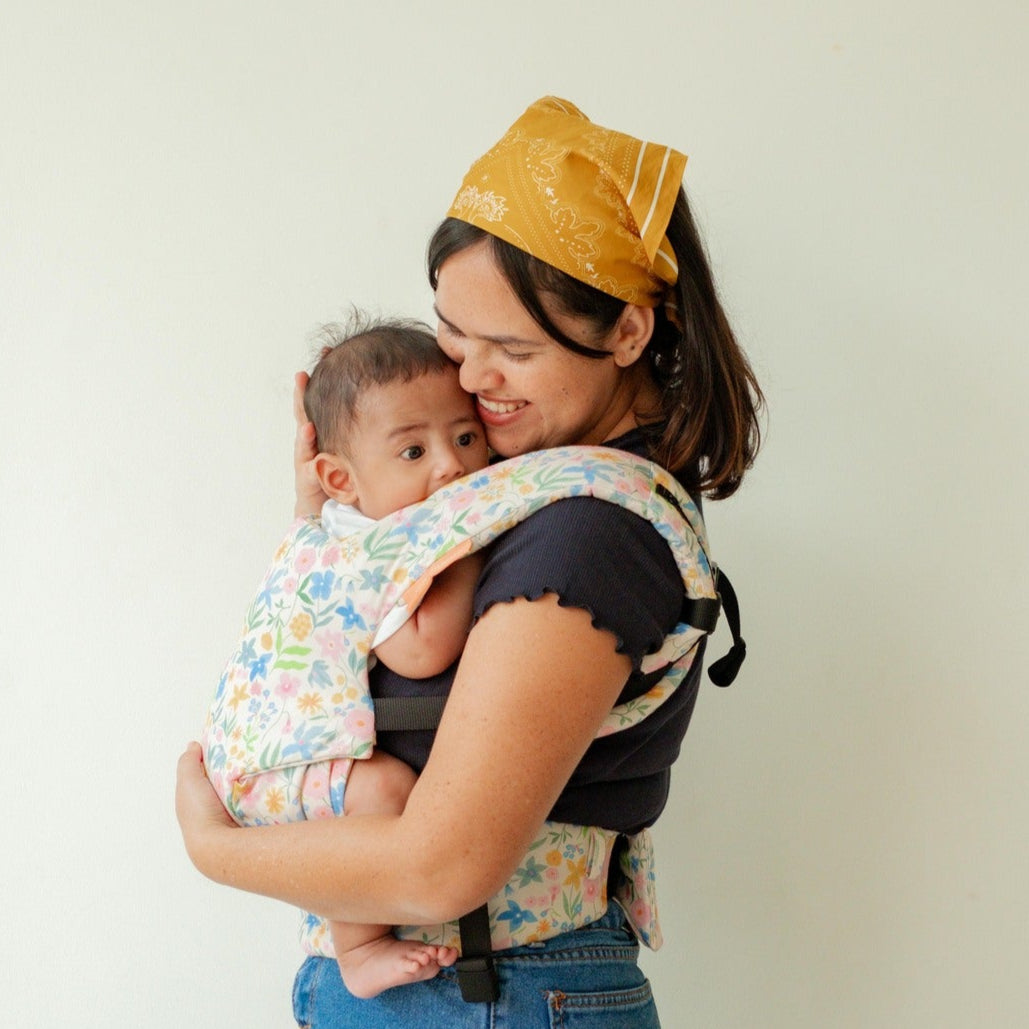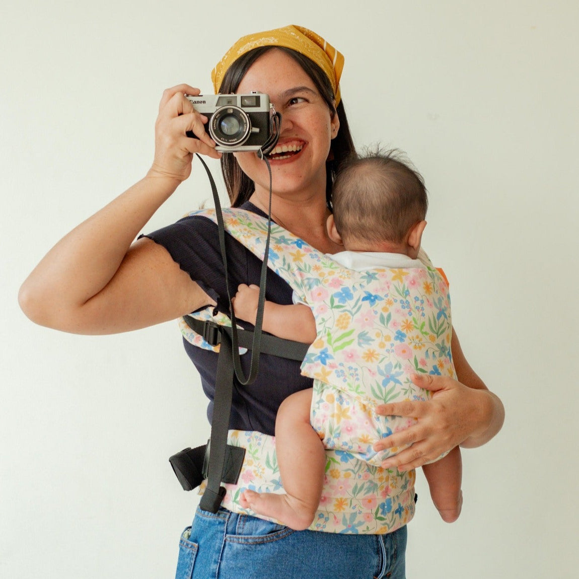 - The baby's weight is distributed evenly to the shoulders, back, chest, and hips of the carrier